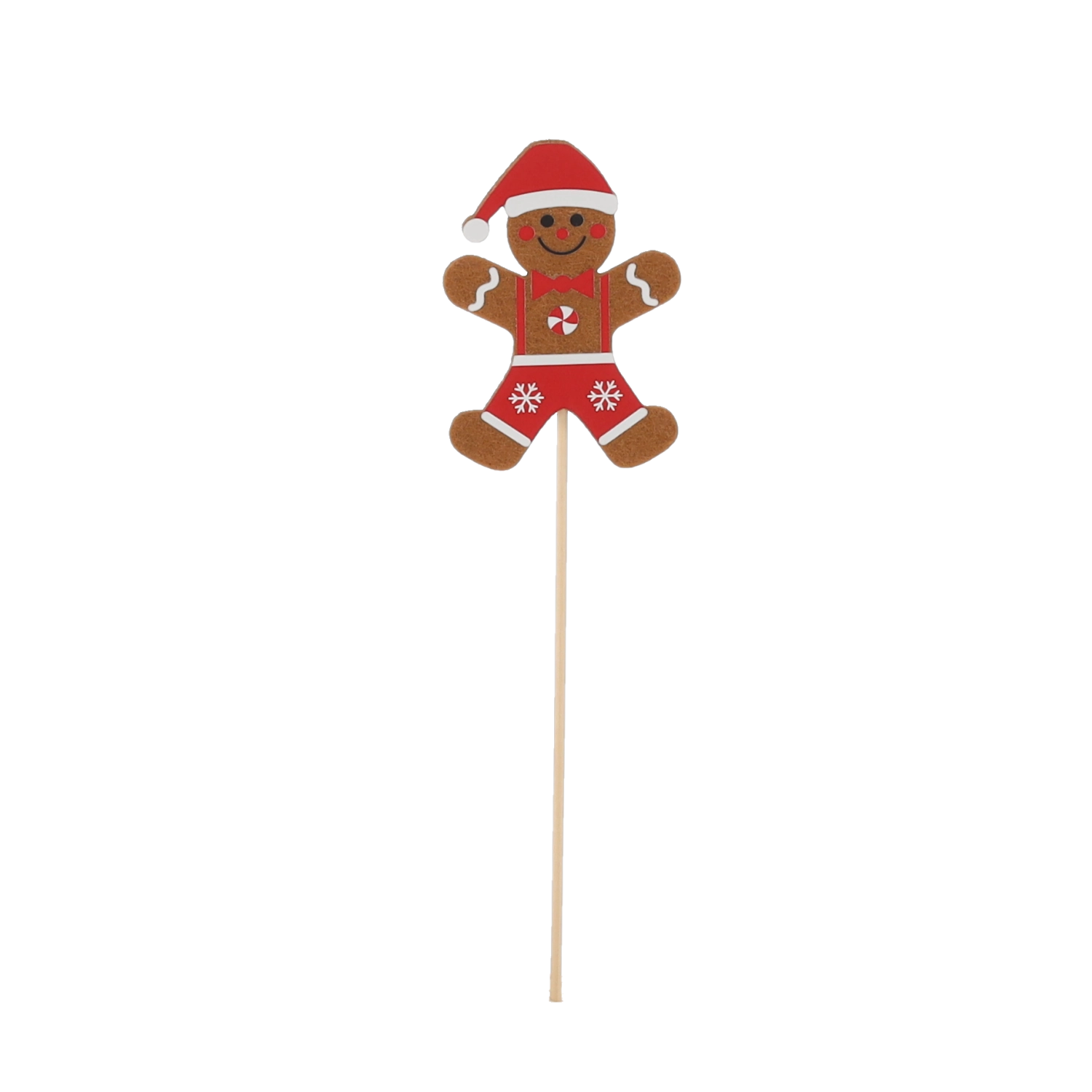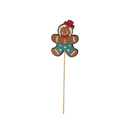 Questa decorazione natalizia a forma di omino di pan di zenzero è pensata per ricordare fedelmente i biscotti tradizionali e donare agli interni un’atmosfera calda e accogliente. Grazie al pratico stecchino, si inserisce facilmente in vasi, ghirlande, composizioni o come elegante dettaglio sulla tavola delle feste.