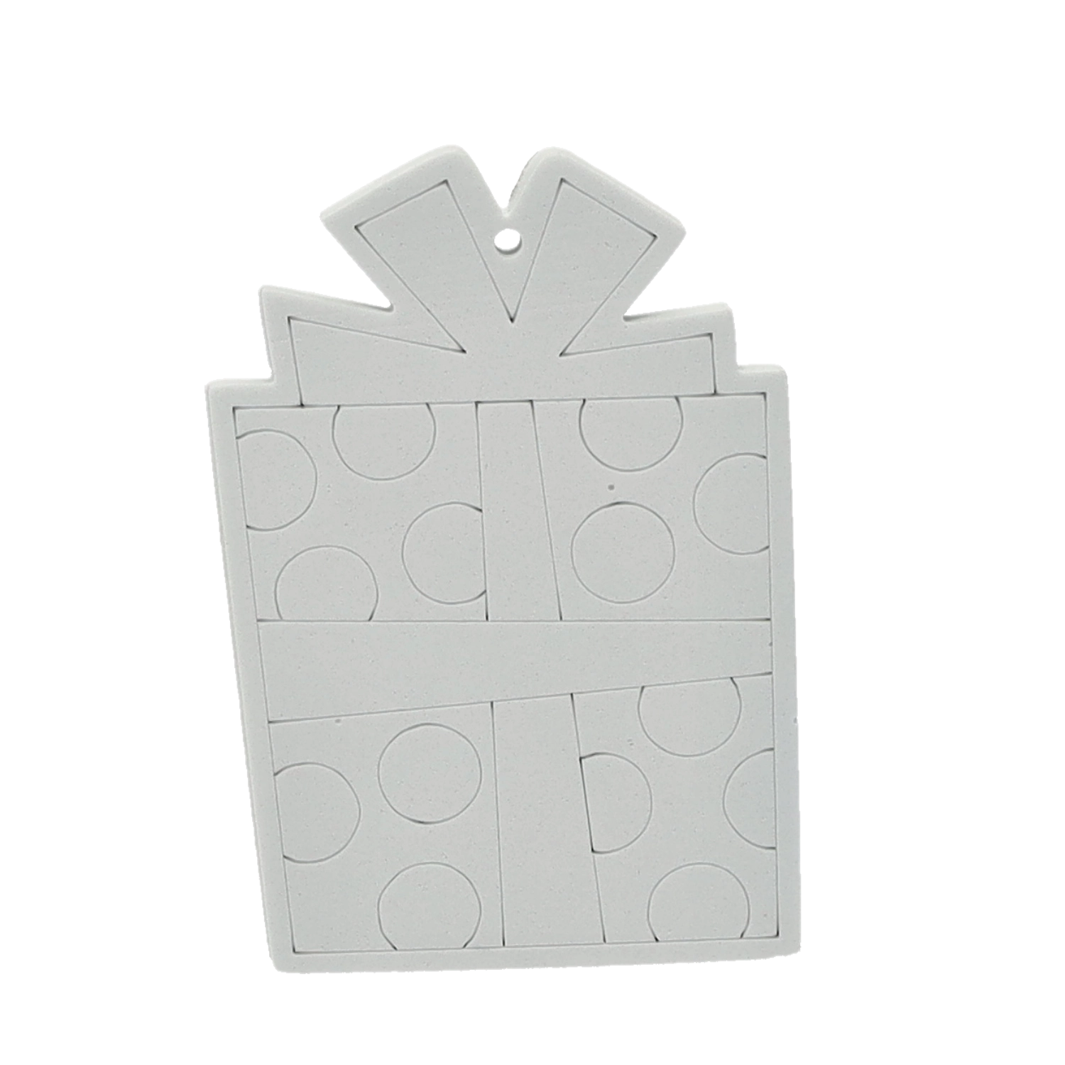 Pupazzo di neve, Babbo Natale, alberello o calza: ogni pezzo ha un foro per il cordoncino, così puoi appenderlo facilmente all’albero o a un pacco regalo.