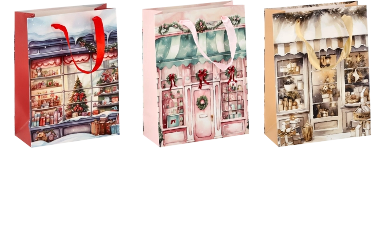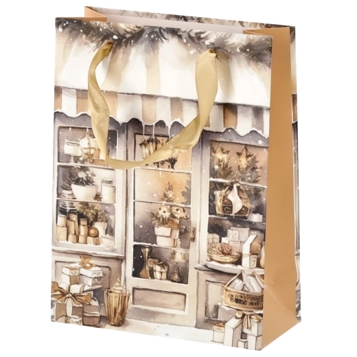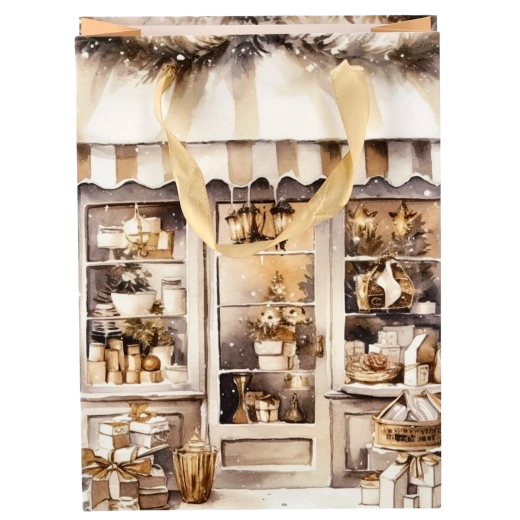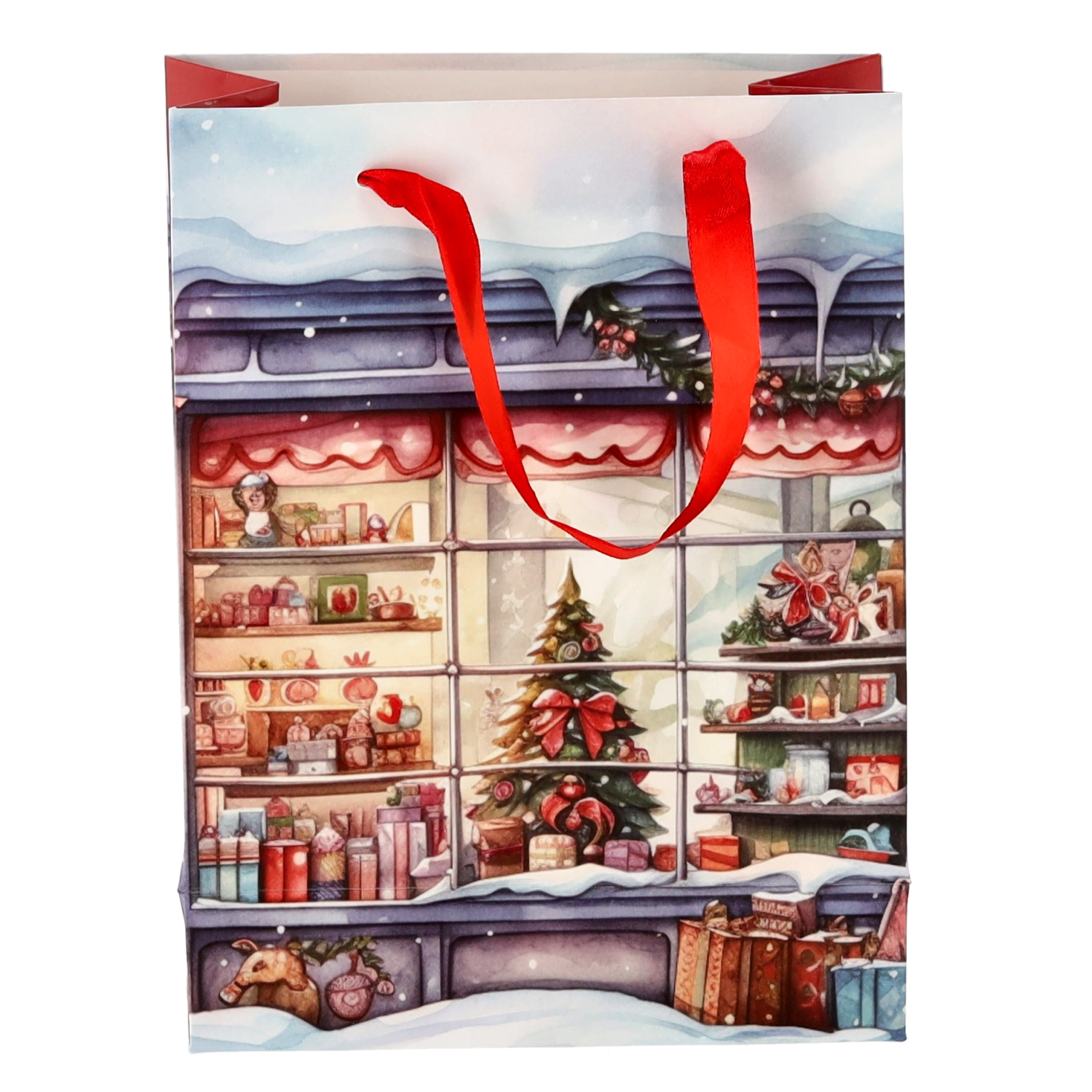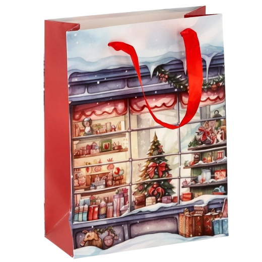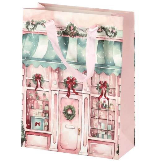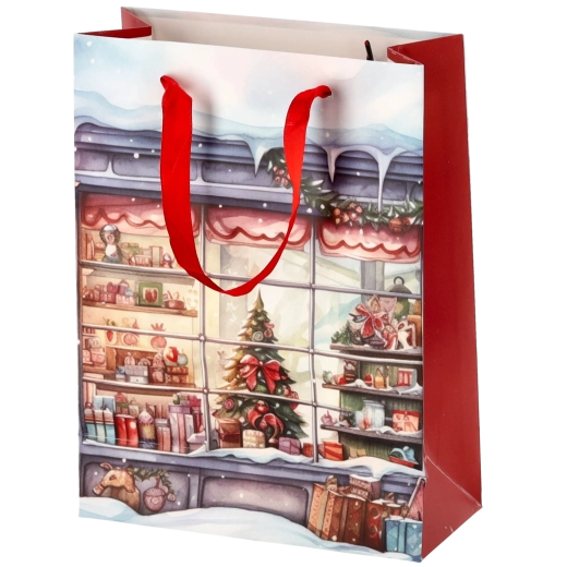 Trasforma il confezionamento dei regali in una vera esperienza. Questa busta natalizia con illustrazione della casetta in stile tradizionale è la scelta ideale per il periodo delle feste. Grazie alle dimensioni compatte ma capienti, contiene comodamente libri, cosmetici, candele o piccoli set regalo.