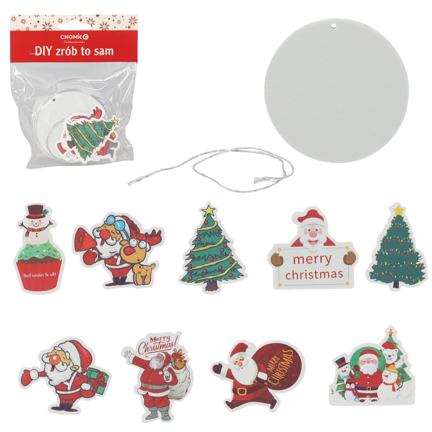 Scopri la magia del Natale con un set fai-da-te che coinvolge tutta la famiglia nel divertimento creativo. Gli ornamenti rotondi e lisci con foro preformato e cordino argentato si completano con gli adesivi inclusi: dal simpatico Babbo Natale ai pupazzi di neve, fino a eleganti alberelli e auguri. Ogni pezzo è unico e immediatamente pronto da appendere.