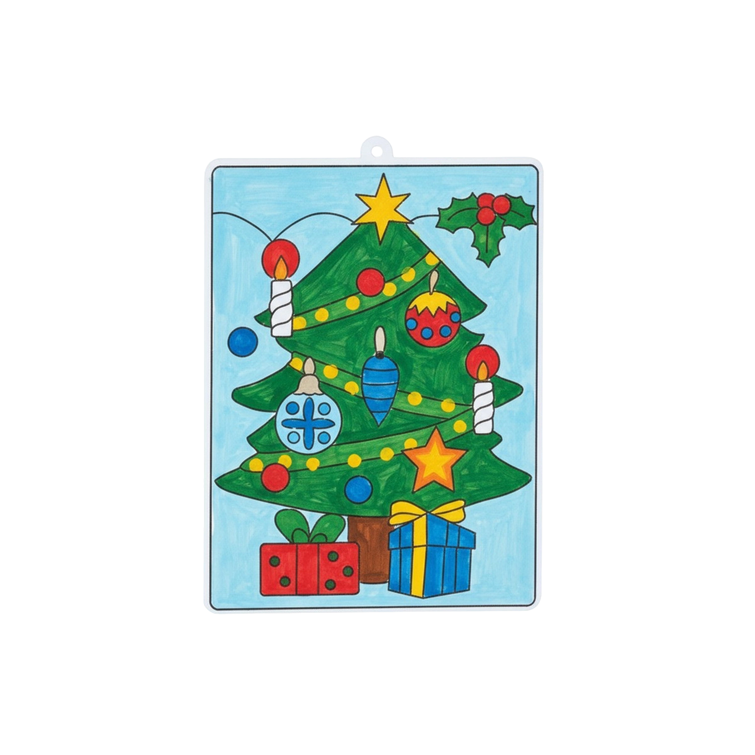 Dopo l’asciugatura si ottiene una leggera vetrata colorata con foro per appenderla – effetto festivo immediato.