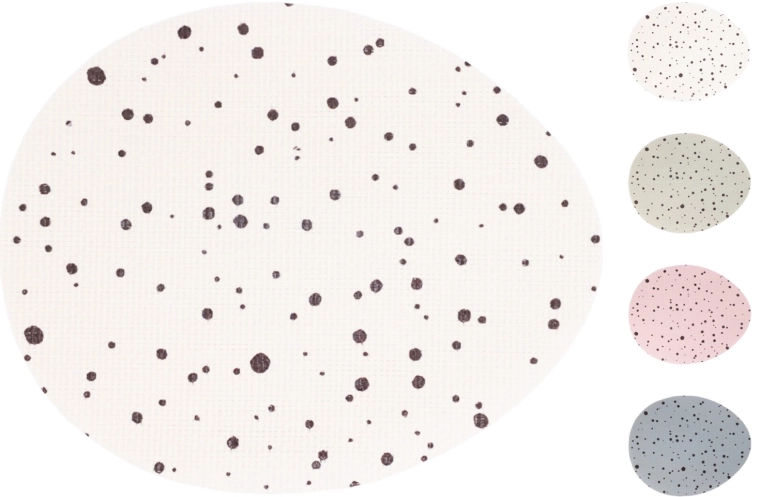 Un elegante sottopiatto a forma di uovo con dimensioni 31 × 36 cm aggiunge al tuo tavolo un'atmosfera festiva e allo stesso tempo lo protegge in modo affidabile da graffi e sporco. Grazie alla struttura leggera (15 g) si trasporta e si ripone con facilità ed è disponibile in quattro colori tenui, perfetti da abbinare a diversi stili di mise en place.