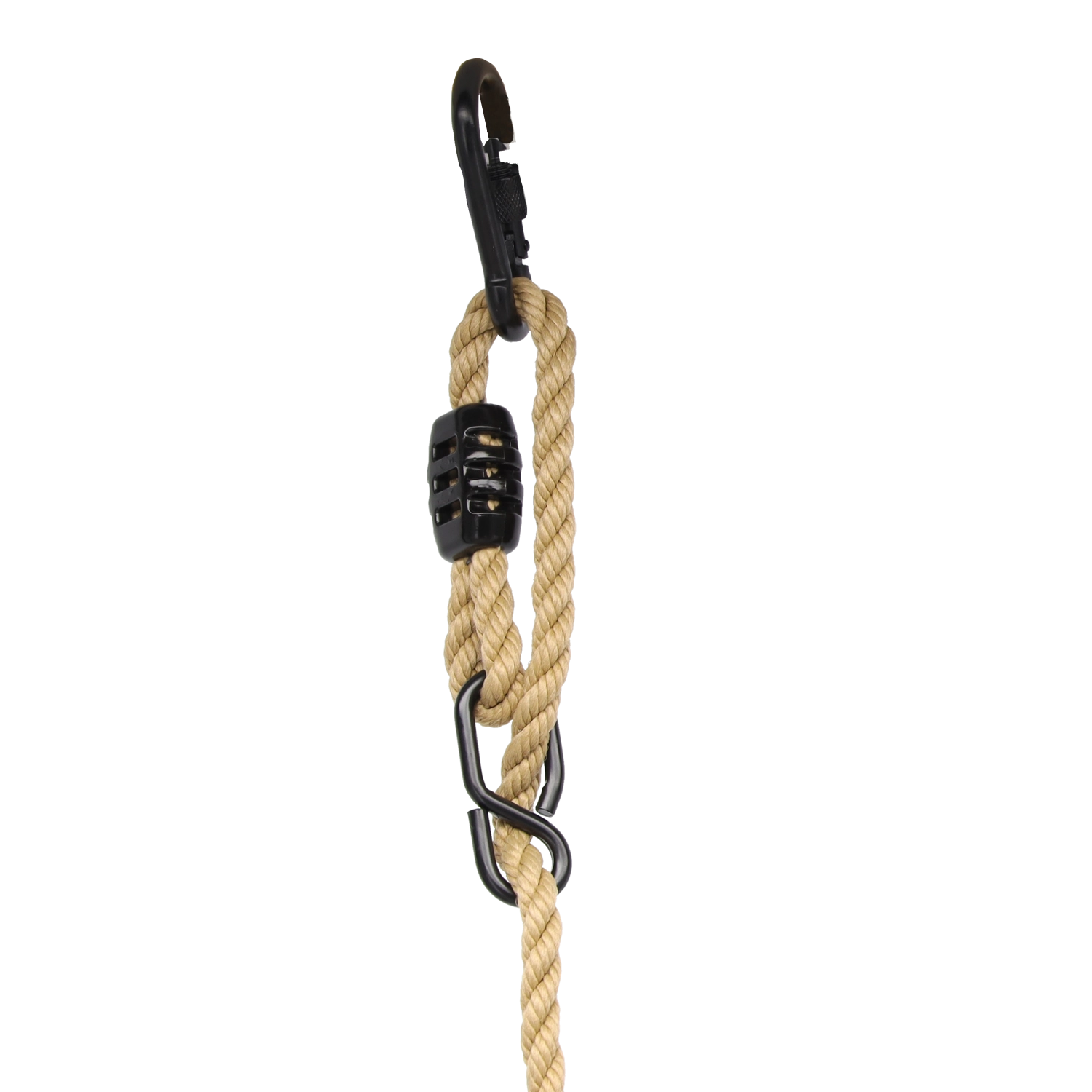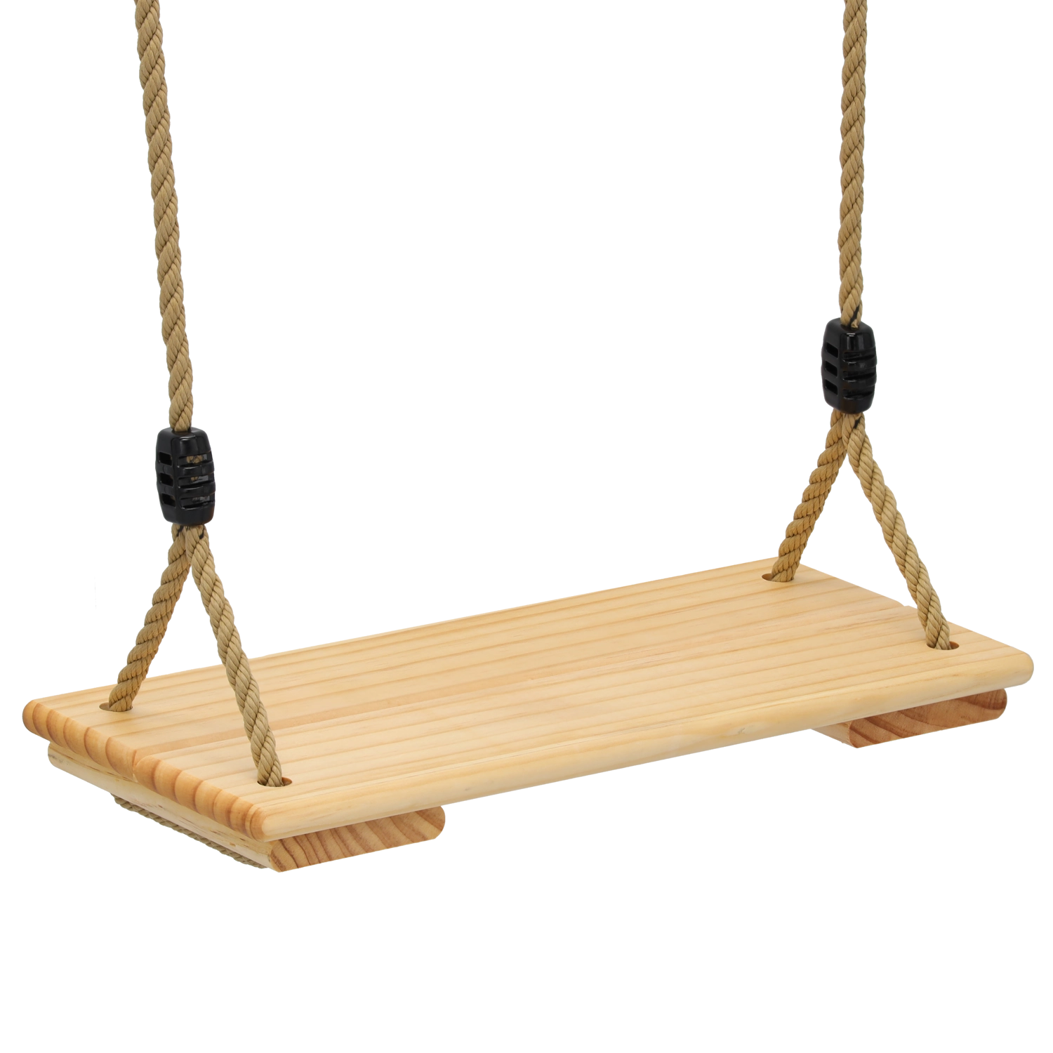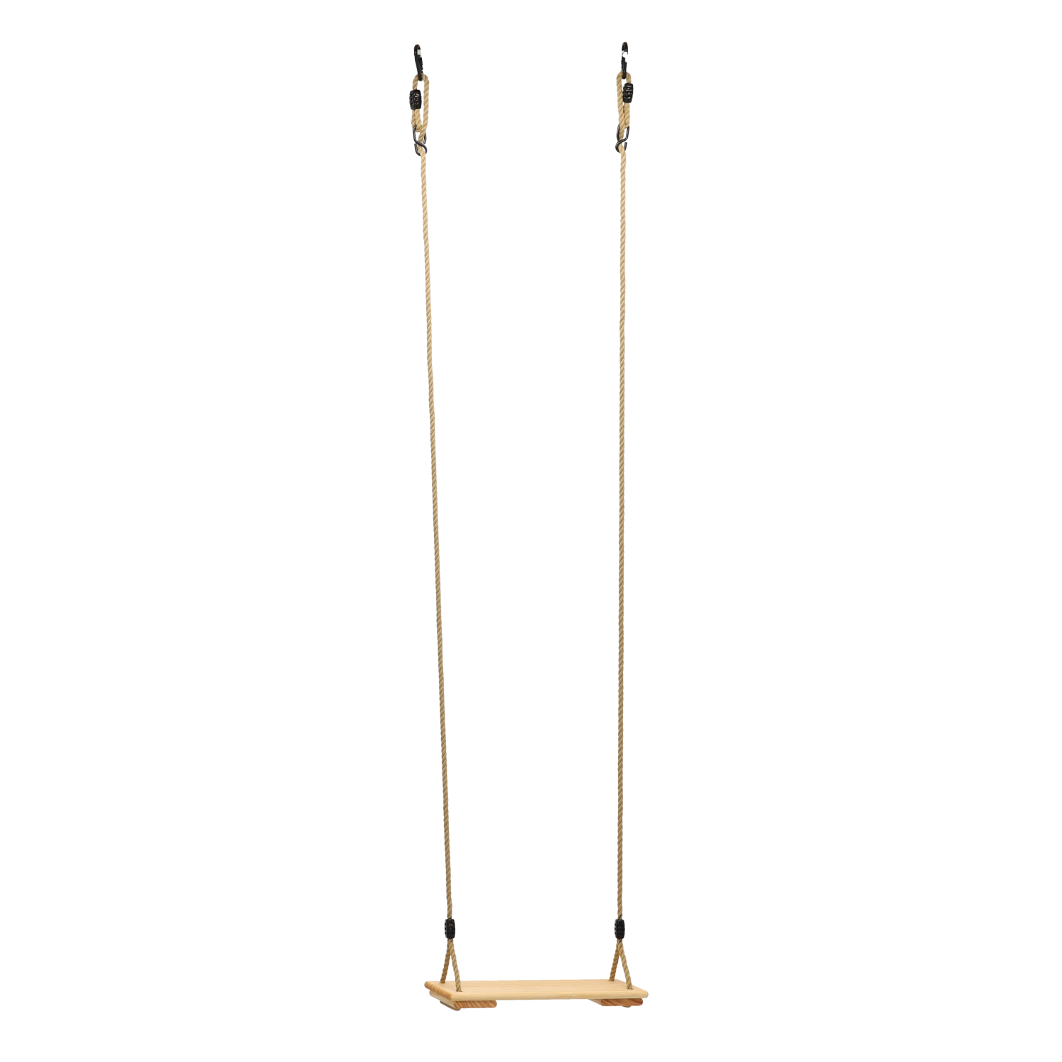 Corde robuste con attacchi e fermi di sicurezza consentono di regolare facilmente l’altezza dell’altalena per bambini e adulti.