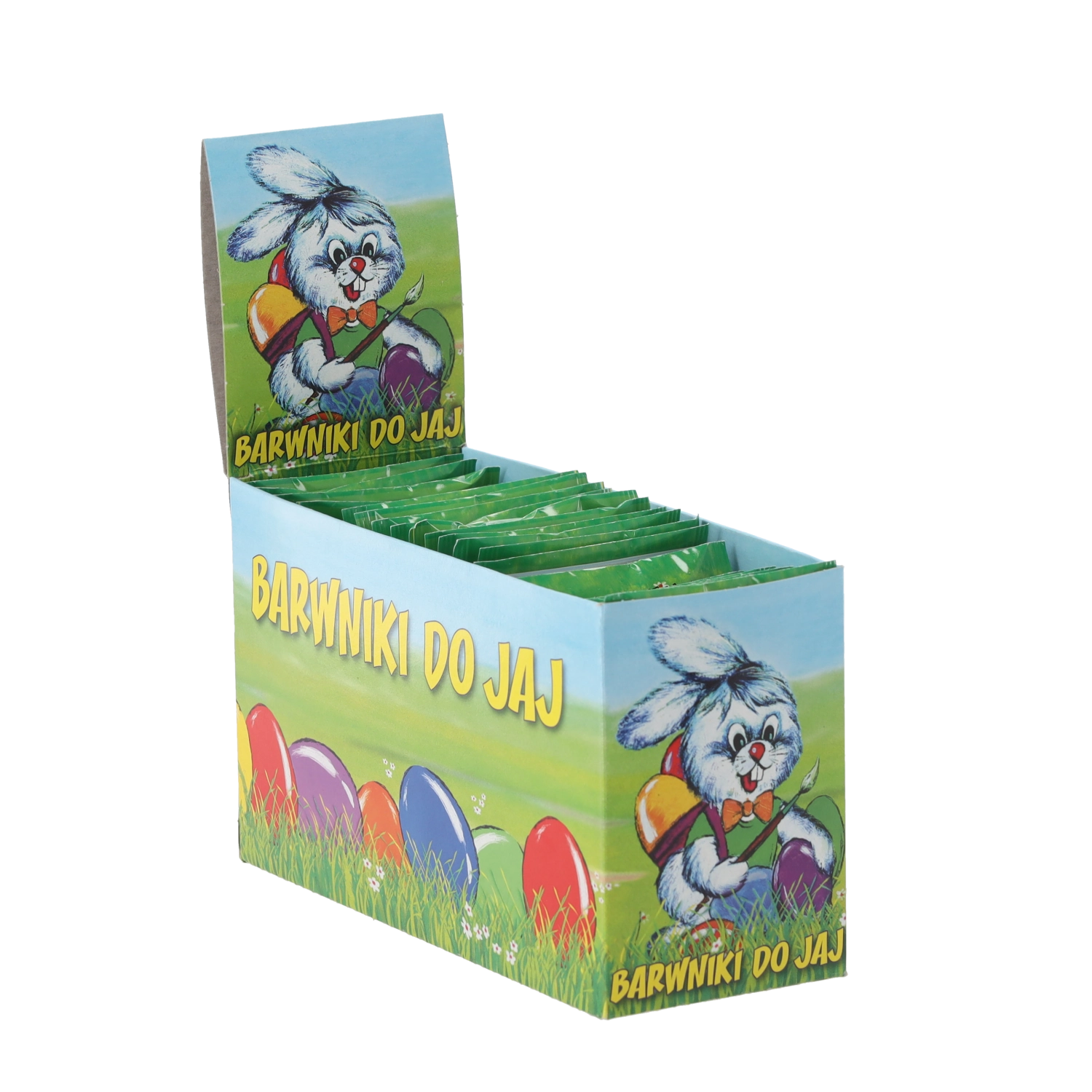 La procedura è semplice: sciogliete il contenuto della bustina in mezza tazza di acqua bollente, aggiungete 1 cucchiaio di aceto, immergete un uovo sodo ancora caldo per 3–6 minuti, lasciate asciugare e per una finitura lucida strofinate con un panno morbido o con un po’ di grasso.