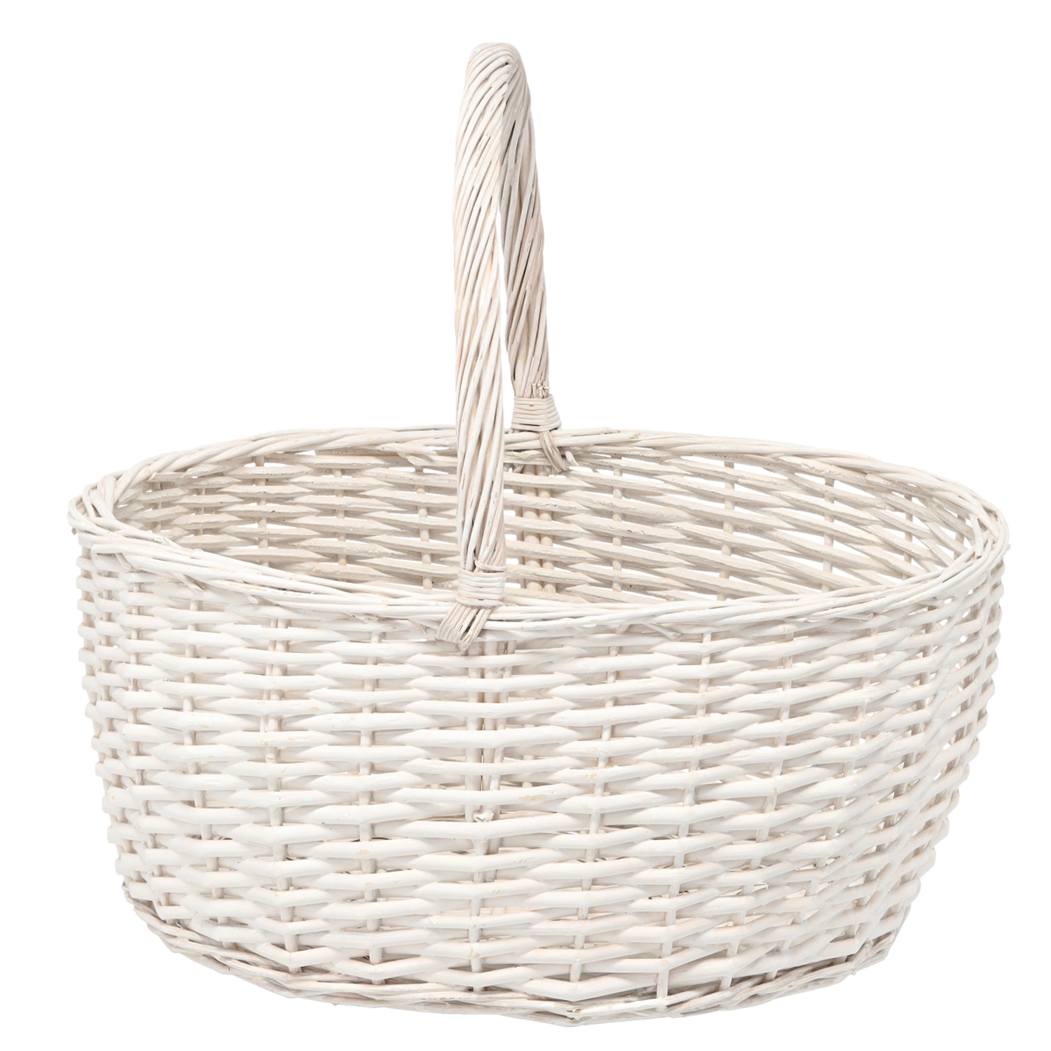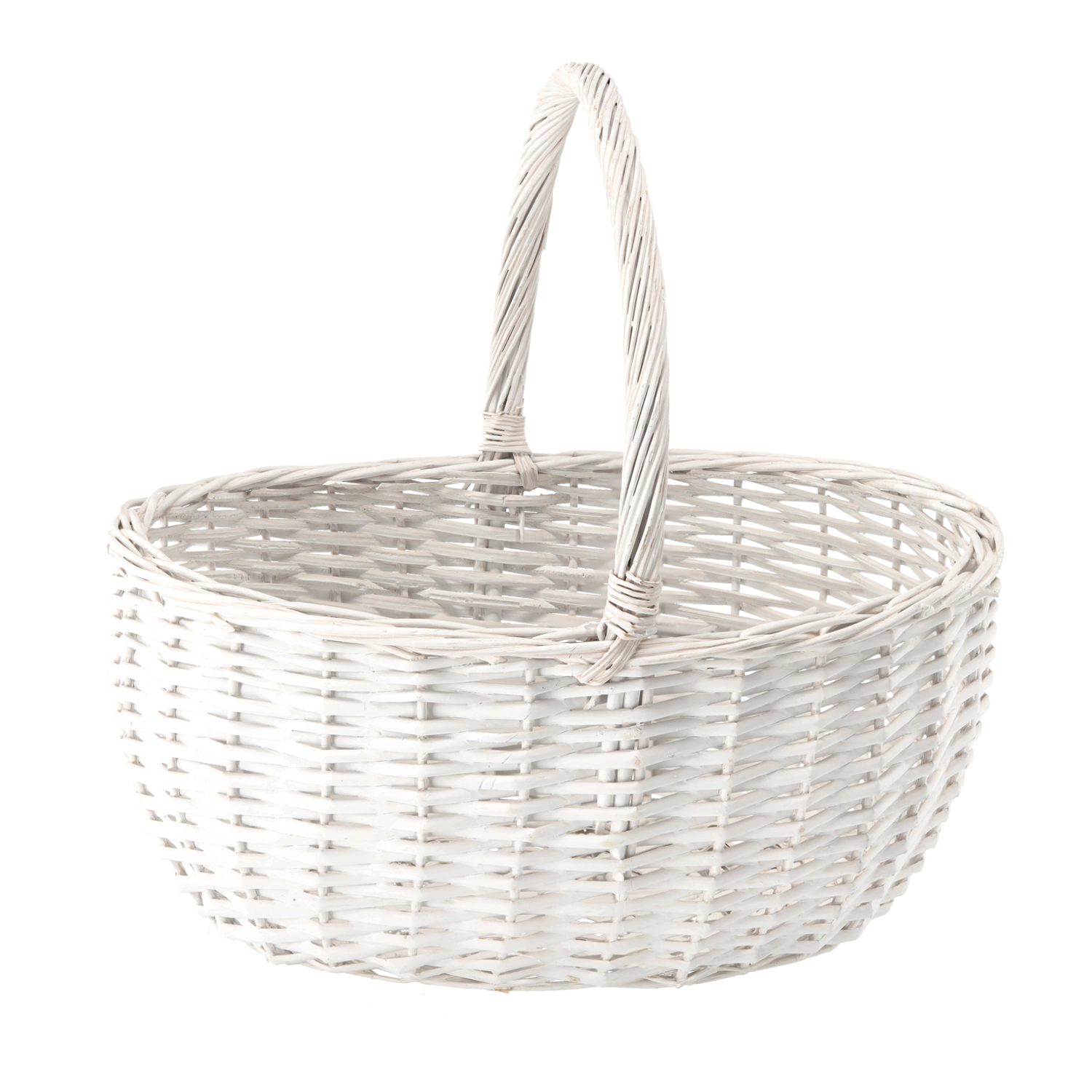 Scopri il cesto intrecciato bianco universale che completa con stile la casa e gli spostamenti quotidiani. Con le dimensioni di 47 × 37 × 21 cm, contiene acquisti, accessori da picnic e composizioni regalo, mentre il manico fisso garantisce un trasporto comodo e sicuro.