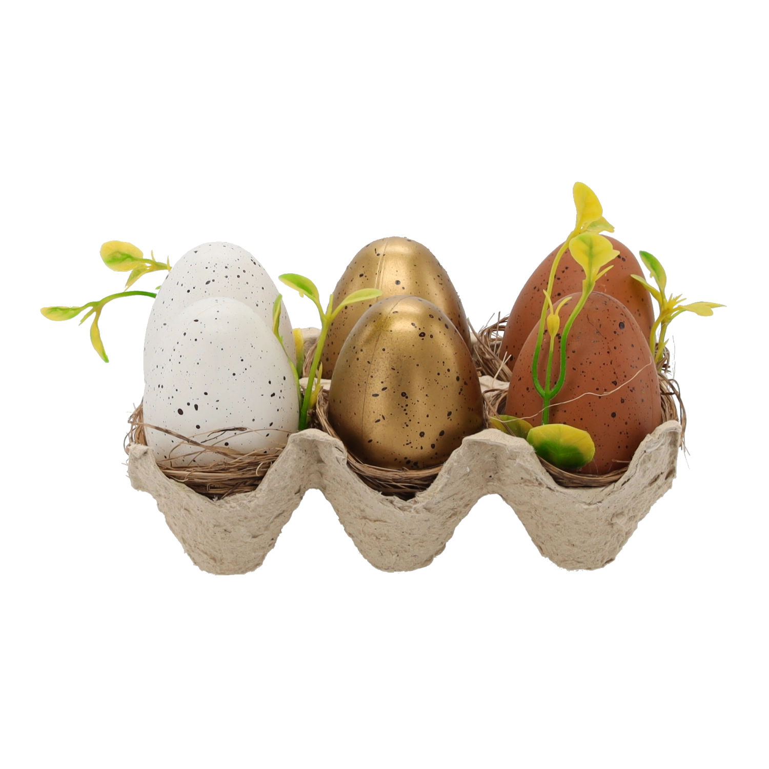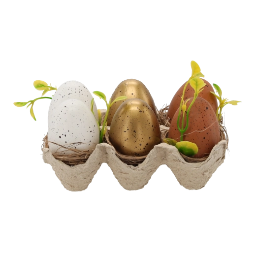 Crea magiche decorazioni di Pasqua con un set di sei uova leggere in tonalità pastello. Ogni uovo ha sul lato inferiore un foro di diametro circa 0,5 cm per un facile fissaggio su stecchini o fili metallici. Le uova sono fornite in una confezione pratica, che puoi utilizzare direttamente nelle tue composizioni. Ideali per ghirlande, composizioni e attività creative per bambini.