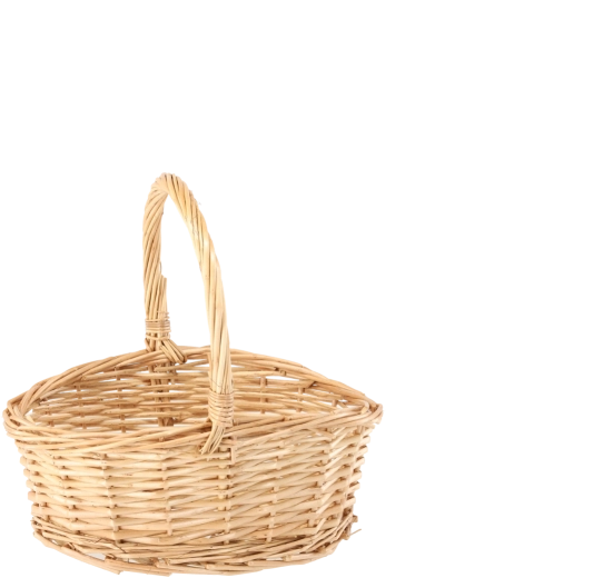 Elegante e pratico cestino in vimini di colore naturale che diventerà il tuo aiutante quotidiano e un accessorio di stile. Offre una struttura robusta, una forma ovale e una costruzione leggera e facile da trasportare con manico integrato per un trasporto confortevole. È perfetto per acquisti, picnic, raccolta funghi e come decorazione per interni.