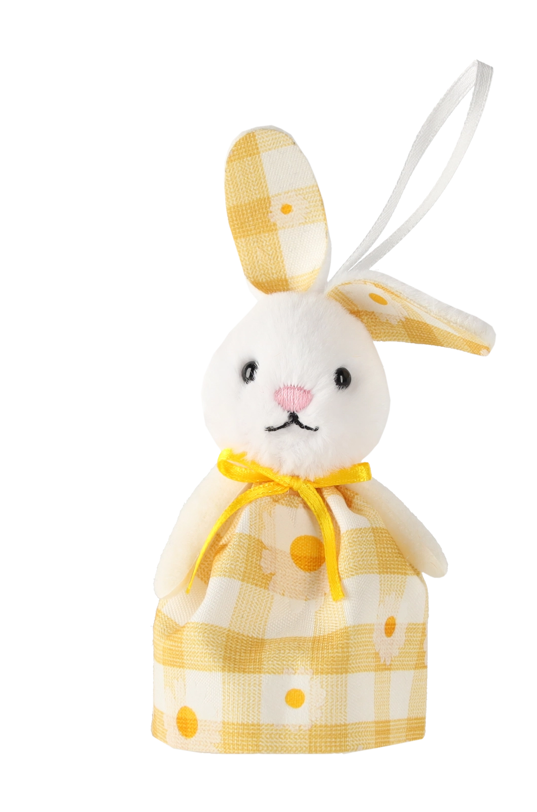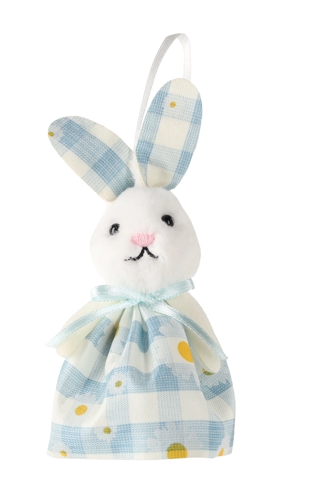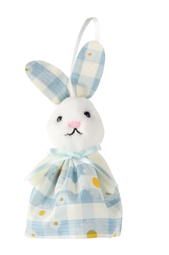 Crea un’allestimento pasquale allegro e colorato con i coniglietti sospesi che incanteranno bambini e adulti. Ogni coniglietto ha una morbida testolina in peluche, lunghe orecchie in tessuto e un abitino in stoffa con quadretti e pois discreti. Grazie al laccetto li collochi in un attimo ovunque: su rametti in vaso, tende, corrimani o pacchetti regalo.
