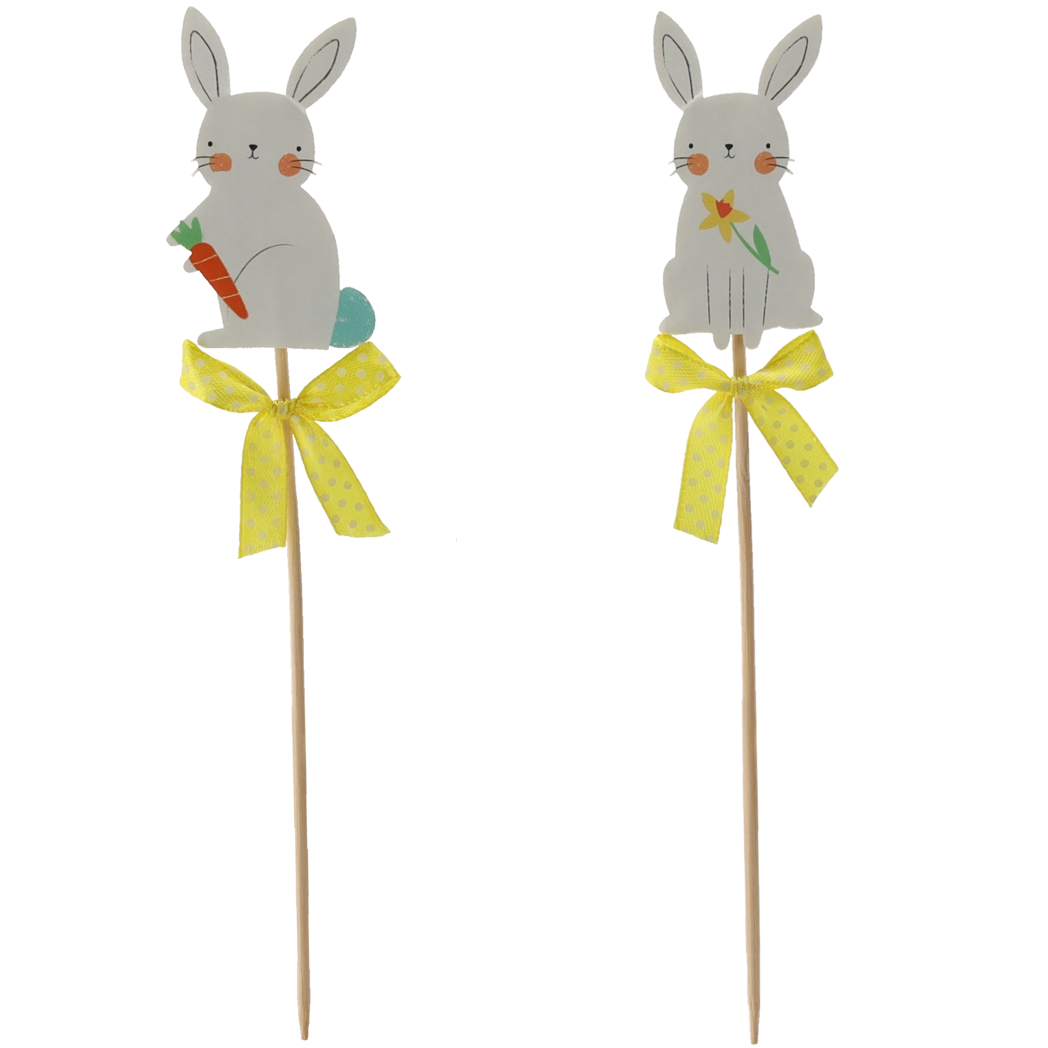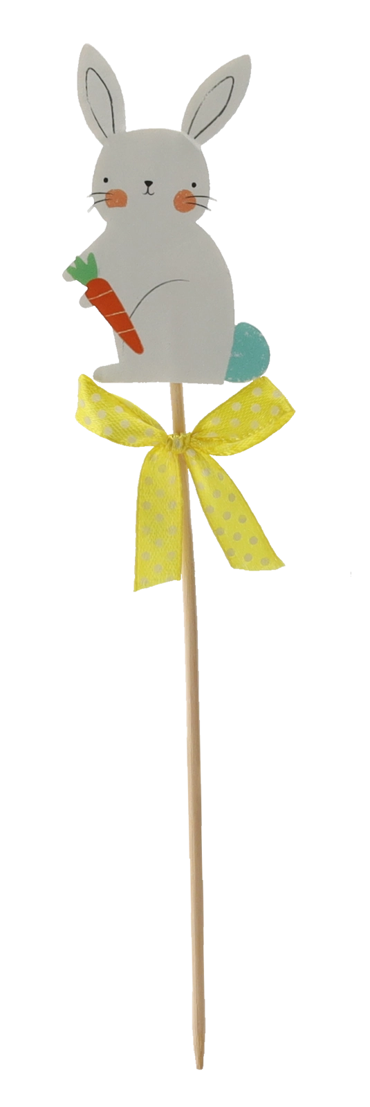Questa decorazione pasquale su stecco è la scelta ideale per abbellire rapidamente e con effetto la casa. Le dimensioni compatte 4 × 7,5 cm permettono di infilzarla facilmente in vasi, ghirlande, composizioni primaverili e centrotavola. Il mix di due graziosi design di coniglietti dona alle decorazioni giocosità e freschezza.