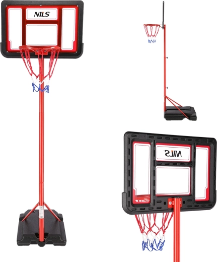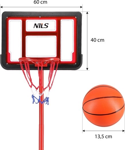 Il canestro da basket per bambini NILS ZDK881A è un set mobile e regolabile in altezza, ideale per i primi passi nel basket. Offre due altezze di regolazione per la struttura e l’anello, materiali resistenti a qualsiasi condizione meteo e, in più nella confezione, un morbido pallone in gomma per un gioco sicuro.