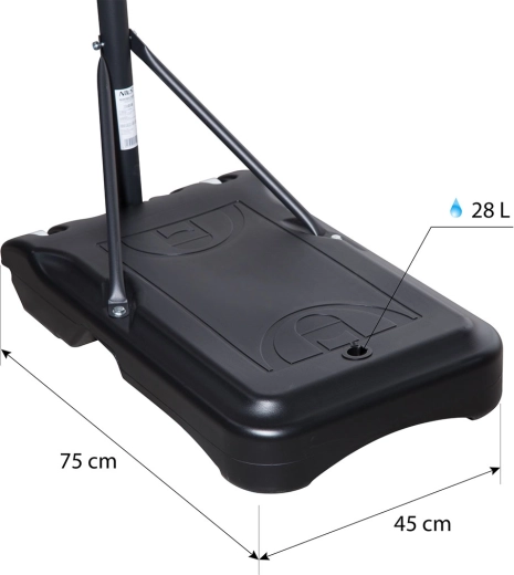 Grazie alla base da 28 litri (acqua/sabbia) e alle ruote integrate ottieni stabilità e piena mobilità. La regolazione dell’altezza in quattro step da 11,5 cm consente di adattare il canestro alle esigenze attuali dei giocatori e agli obiettivi di allenamento.