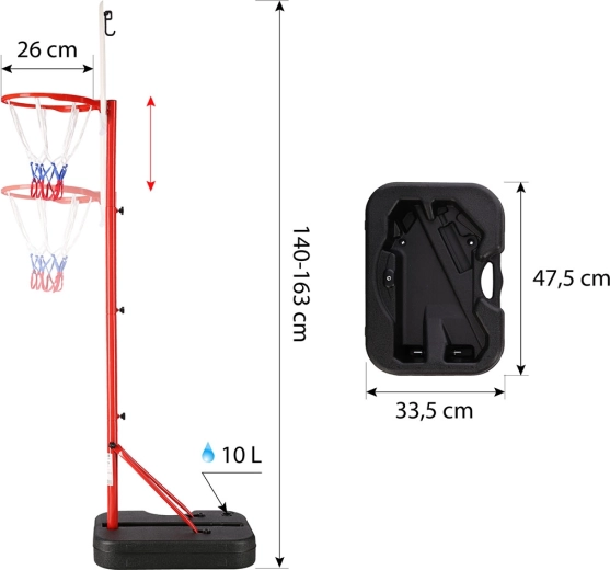 Grazie alla base riempibile (10 l) il canestro è stabile ma anche facile da spostare. Le dimensioni compatte del tabellone 46,5 × 32,5 cm e la struttura leggera 3,2 kg facilitano la movimentazione e lo stoccaggio. L’attrezzatura perfetta per i piccoli cestisti che vogliono allenare la precisione e migliorare le proprie abilità.