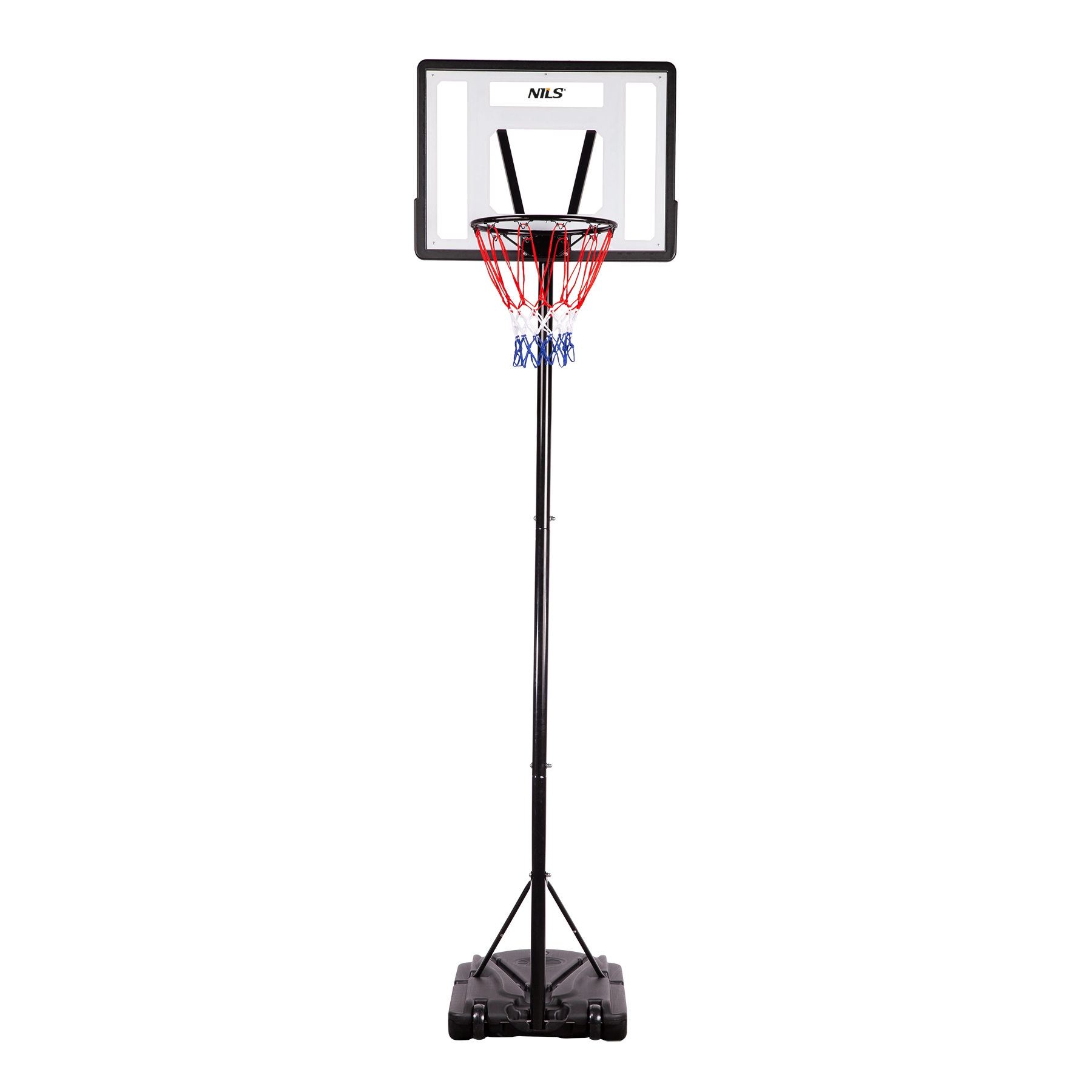Il canestro da basket portatile NILS è la scelta ideale per allenamento e divertimento in giardino, nel vialetto o sul campo. La robusta struttura in acciaio, il tabellone trasparente in PE e la rete in nylon di qualità garantiscono una lunga durata anche con uso frequente.