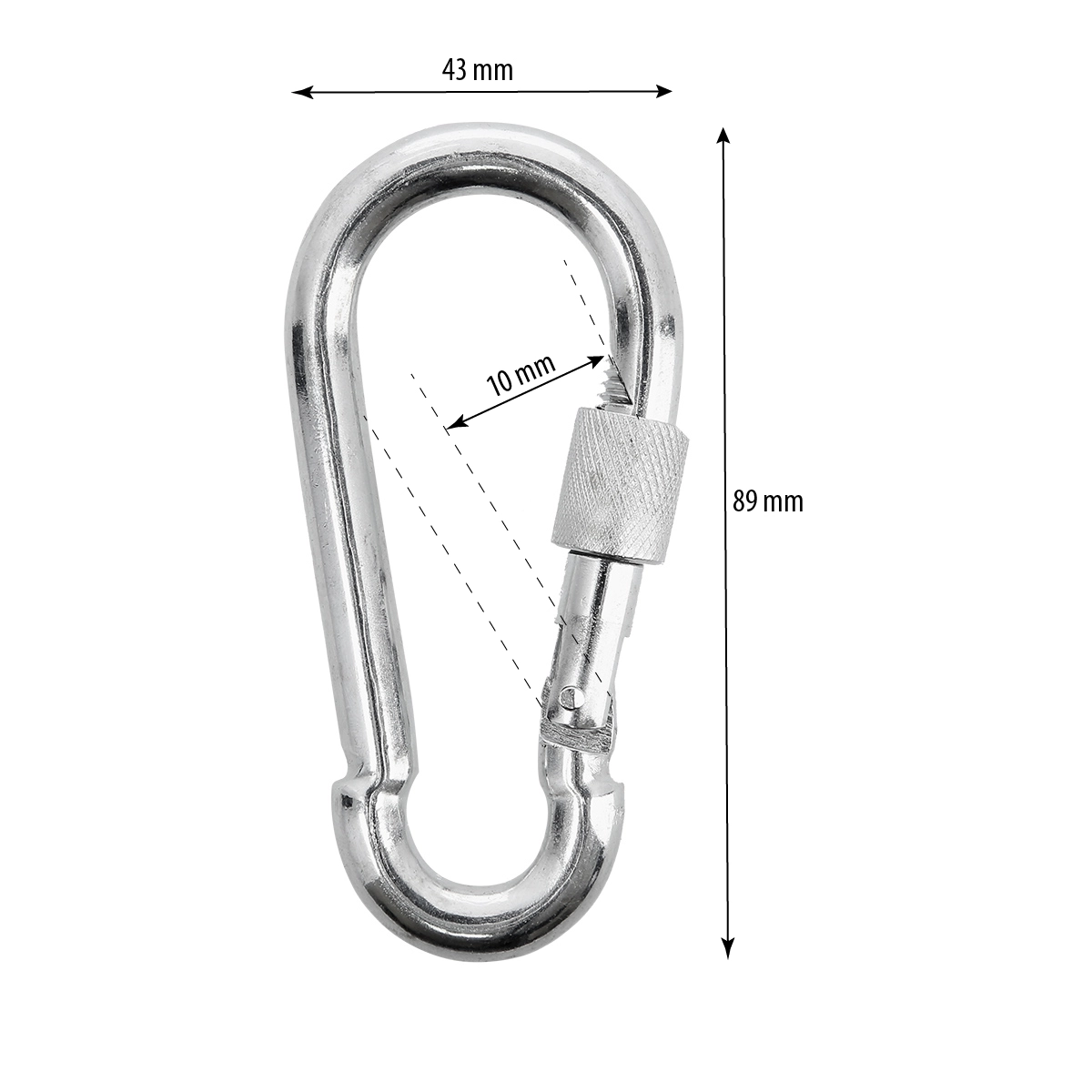 Cerchi un moschettone affidabile per attrezzatura, chiavi o fissaggio di accessori? Questo moschettone in acciaio zincato combina peso minimo e alta resistenza. La ghiera a vite impedisce aperture accidentali e mantiene tutto saldamente in posizione.