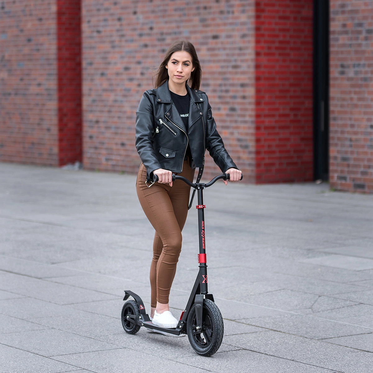 NILS Extreme HC300 è un monopattino urbano ben progettato per adulti, in grado di affrontare sampietrini, cordoli e crepe nell’asfalto. Le grandi ruote pneumatiche anteriori da 300 mm e posteriori da 200 mm, in combinazione con la sospensione, assorbono le irregolarità e garantiscono stabilità anche sui tragitti più lunghi. Il meccanismo pieghevole permette di ripiegare rapidamente il manubrio e trasportare facilmente il monopattino sui mezzi pubblici o riporlo nel bagagliaio.