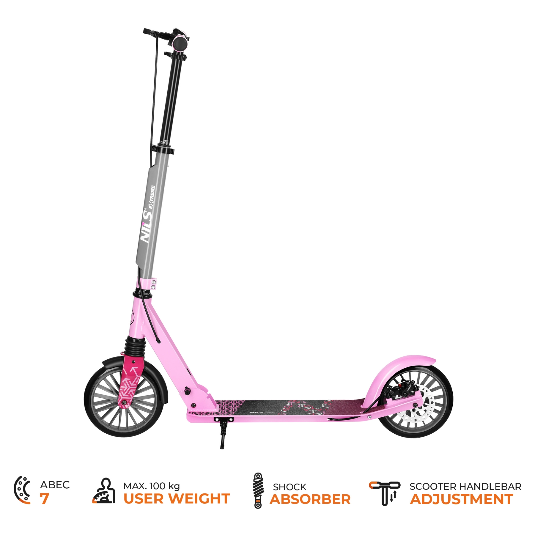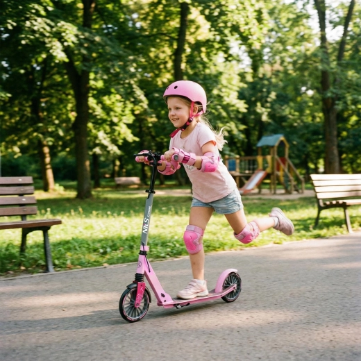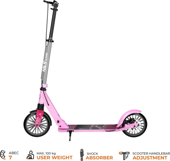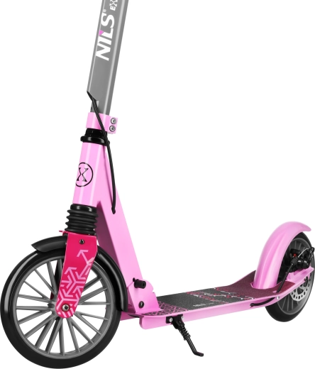 Il monopattino NILS Extreme LUMIA è il compagno ideale per gli spostamenti quotidiani e le uscite nel tempo libero. La solida combinazione di alluminio e acciaio mantiene il peso ridotto, mentre la sospensione anteriore assorbe le asperità. Il deck antiscivolo e le manopole morbide aumentano sicurezza e comfort.