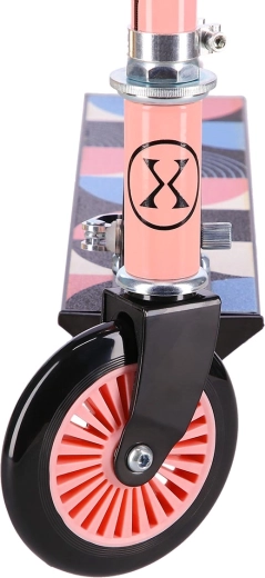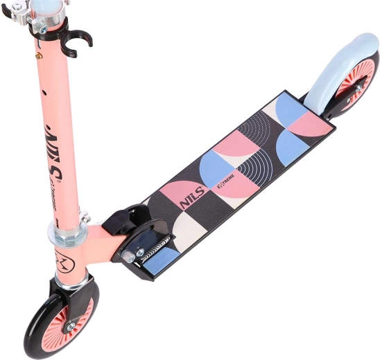 Il monopattino NILS Extreme in colore rosa‑blu unisce una solida struttura in acciaio a una pedana alleggerita in alluminio per una guida stabile e confortevole su asfalto e marciapiedi compatti. Le ruote in poliuretano da 125 mm con cuscinetti ABEC 5 assicurano uno scorrimento fluido e affidabile negli spostamenti quotidiani.