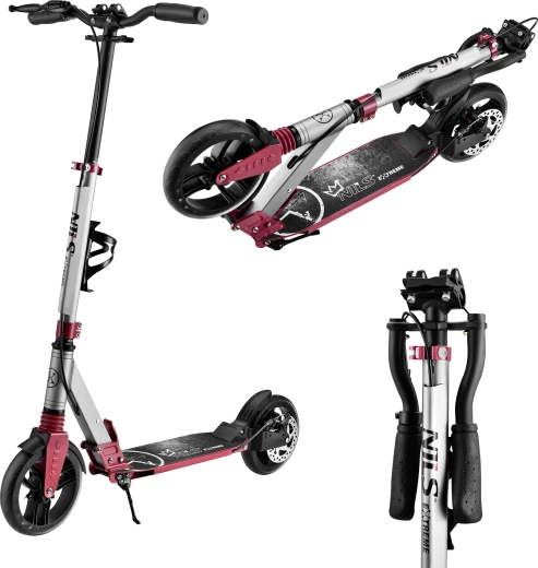 Il monopattino NILS Extreme è la scelta ideale per gli spostamenti in città e per le uscite nel tempo libero. Grazie alla costruzione in alluminio pesa solo 6,1 kg, ma supporta fino a 100 kg. Le grandi ruote in poliuretano da 200 mm con illuminazione LED e i cuscinetti ABEC 7 assicurano una guida liscia, silenziosa e veloce su asfalto e strade battute.