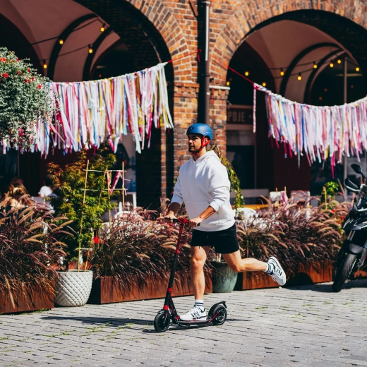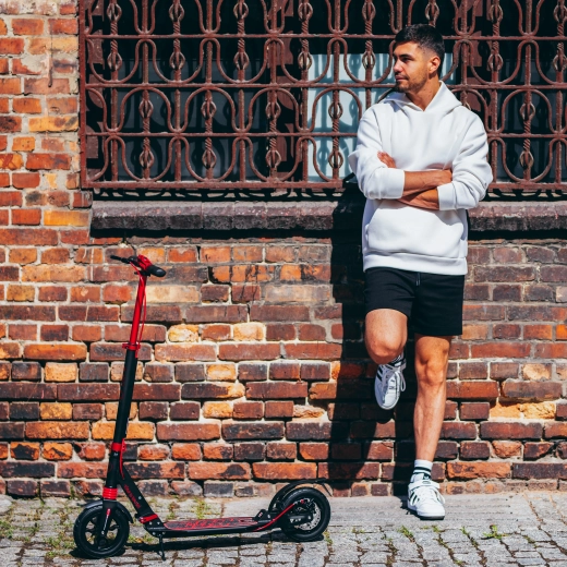 Per la massima sicurezza, la ruota posteriore è dotata di freno a disco e anche di freno a pedale con catarifrangente integrato per una migliore visibilità al crepuscolo. L’altezza del manubrio regolabile e le manopole ergonomiche in gomma garantiscono una presa confortevole anche nei tragitti più lunghi. Il monopattino si ripiega facilmente in dimensioni compatte e grazie alla tracolla removibile lo trasporti comodamente sui mezzi pubblici, in auto o lo riponi a casa.