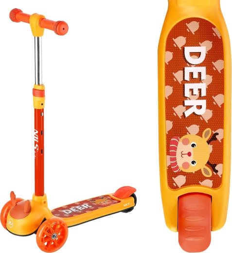 Il monopattino triciclo per bambini NILS Fun Deer è progettato per i più piccoli, offrendo massima stabilità, sicurezza e divertimento. Le due grandi ruote anteriori e la ruota posteriore più piccola con illuminazione LED garantiscono una guida fluida e ben visibile, mentre il sistema di sterzo basculante insegna ai bambini a mantenere l’equilibrio in modo naturale. Il manubrio con impugnature in gomma e terminali di sicurezza “a funghetto” protegge i palmi dei bambini ed evita lo scivolamento delle mani.