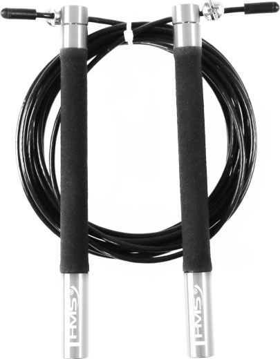 La corda veloce HMS si distingue per le impugnature in alluminio con presa in foam e il cavo in acciaio rivestito in poliuretano per una lunga durata. Grazie ai cuscinetti a sfera nei giunti otterrai alta velocità e scorrevolezza, ideale per HIIT, cross training, double unders e cardio quotidiano.