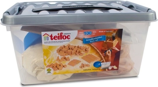 Prova l'emozione dei veri costruttori con il set di costruzione Teifoc, che contiene 100 pezzi di elementi costruttivi. Mescola la malta, ungi i mattoni e costruisci case o castelli. Il divertimento inizia e finisce dove vuoi tu.