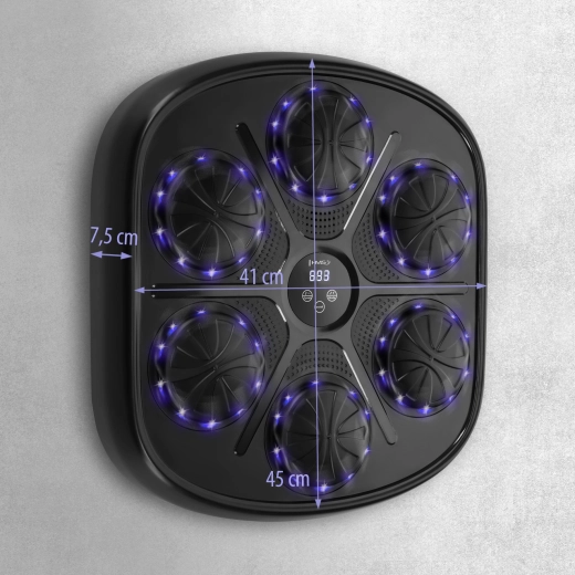 Con Bluetooth e altoparlante integrato puoi ascoltare la tua musica preferita durante l’allenamento. L’alimentazione a batteria e la ricarica USB‑C facilitano l’uso quotidiano. Il montaggio è immediato: fissi il bersaglio con strisce in velcro e adesivi senza forare, ideale quindi per appartamenti e spazi ridotti.