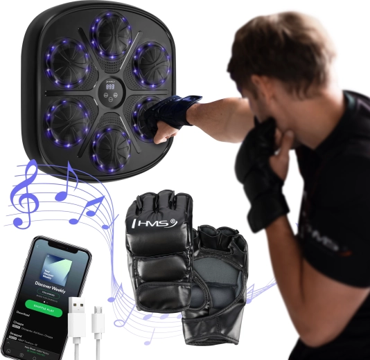 HMS TB03 porta l’allenamento di boxe domestico a un livello superiore. La dinamica retroilluminazione LED evidenzia chiaramente le zone d’impatto e invita a reazioni rapide e precise, migliorando coordinazione occhio‑mano, riflessi e forma cardiovascolare. Il display integrato con conteggio dei colpi precisi consente un controllo dei progressi semplice e chiaro, senza impostazioni superflue.