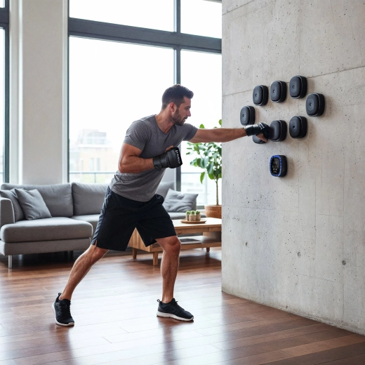 Scegli tra 9 programmi di allenamento e imposta la velocità dell’illuminazione in base al livello. L’installazione è rapida e non danneggia le pareti: tutto è fissato con resistente velcro. La batteria Li-Ion integrata da 2000 mAh garantisce energia a sufficienza; la ricarica multipla via USB-C (fino a 8 moduli contemporaneamente) fa risparmiare tempo e cavi. Nella confezione trovi anche i guanti MMA, così puoi iniziare ad allenarti subito.