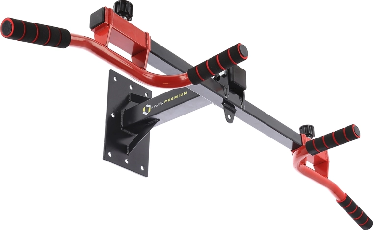 Universale sbarra HMS PREMIUM DD10 per montaggio a parete e a soffitto, salva spazio e offre ampie possibilità di allenamento. Consente trazioni a presa prona, supina e neutra, dispone di interasse regolabile delle impugnature (5 posizioni) e di maniglie in gomma antiscivolo per sicurezza e comfort. Include un supporto per sacco da boxe, ottenendo così una soluzione 2 in 1 per la palestra domestica. Struttura in acciaio stabile con 6 fori di montaggio e portata di 150 kg per allenamenti in totale sicurezza.