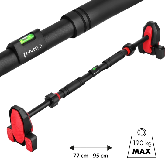 L’installazione avviene senza alcuna foratura: imposti la lunghezza 77–95 cm, serri il blocco e, grazie alla livella integrata, allinei facilmente alla posizione ideale. Le impugnature in morbida schiuma sono piacevoli al tatto e non scivolano nemmeno durante allenamenti prolungati. La sbarra è adatta per trazioni a presa prona e supina, hang, australian pull-up e esercizi addominali.