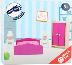 Questo set da camera per la casa delle bambole, curato nei dettagli, offre una lavorazione in legno di qualità, un delicato abbinamento di colori in rosa e bianco e dimensioni studiate per un gioco confortevole. Include un letto con trapuntina, un armadio, comodini e lampade – tutto in scala per bambole fino a 12 cm. Il resistente legno massello garantisce lunga durata e un gioco sicuro per bambini dai 3 anni.