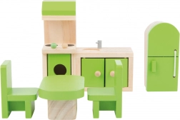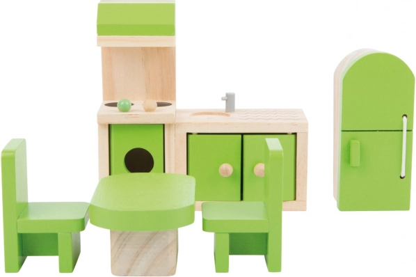 Questo set cucina, curato nei dettagli, per casette offre tutto ciò di cui i piccoli cuochi hanno bisogno: lavello, fornello, frigorifero, tavolo e due seggioline in una piacevole combinazione di legno naturale e vivaci accenti verdi. Grazie al legno massello, i mobili sono stabili e pronti per il gioco quotidiano.