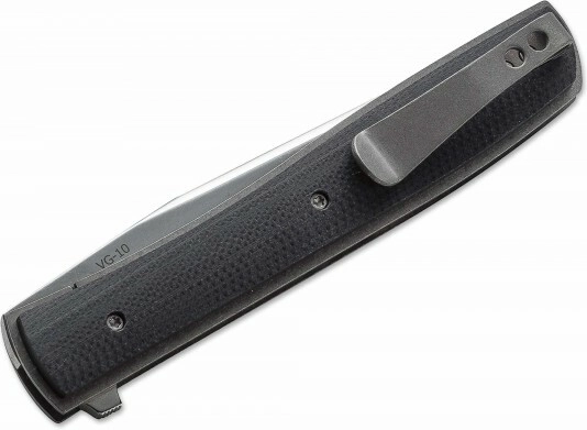 Elegante e straordinariamente sottile coltello EDC Böker Plus Urban Trapper progettato dal designer Brad Zinker, si distingue per la costruzione leggera, l’azione fluida su cuscinetti a sfera e l’affidabile blocco Framelock. La lama in pregiato acciaio VG-10, l’apertura tramite flipper e le guancette in G10 nere con clip da tasca in titanio rendono questo coltello una scelta ideale per l’uso quotidiano.