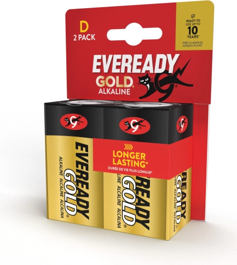 L’affidabile batteria alcalina D (LR20) ENERGIZER EVEREADY GOLD offre lunga durata e prestazioni stabili per dispositivi a basso e medio consumo, come telecomandi, radio, calcolatrici e giocattoli. Garantisce fino a 10 anni di conservazione ed è priva di mercurio, cadmio e piombo aggiunti.
