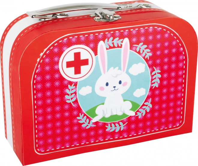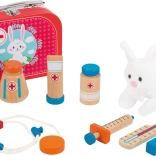 Delizioso set per piccoli medici: la SMALL FOOT valigetta da dottore con coniglietto porta con sé 9 accessori in una pratica valigetta portatile e un morbido coniglietto di peluche per giocare all'ambulatorio. I bambini dai 3 anni possono prendersi cura dei pazienti con stetoscopio, termometro e siringa, realizzati con materiali sicuri: legno, cartone e tessuto.