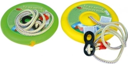 La confezione include la seduta confortevole, una corda resistente (circa 175 cm) e l’elemento per l’aggancio: il montaggio è rapido e semplice. L’altezza consigliata di sospensione della seduta è 35–59 cm da terra. Il prodotto è realizzato in plastica leggera e resistente, è conforme a CE e EN 71 ed è adatto a bambini dai 3 anni. Utilizzare sempre sotto la supervisione di un adulto.