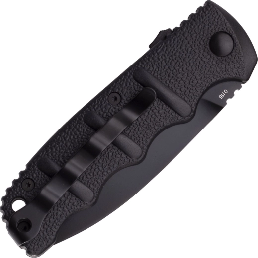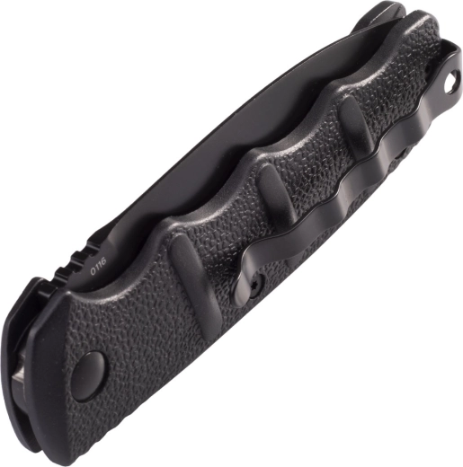 L’impugnatura in alluminio nero con forma ergonomica e scanellature pronunciate assicura controllo anche con i guanti. Il blocco di sicurezza scorrevole integrato completa il blocco a pulsante per maggiore sicurezza durante il porto. La clip da tasca e il lanyard hole facilitano il trasporto quotidiano.