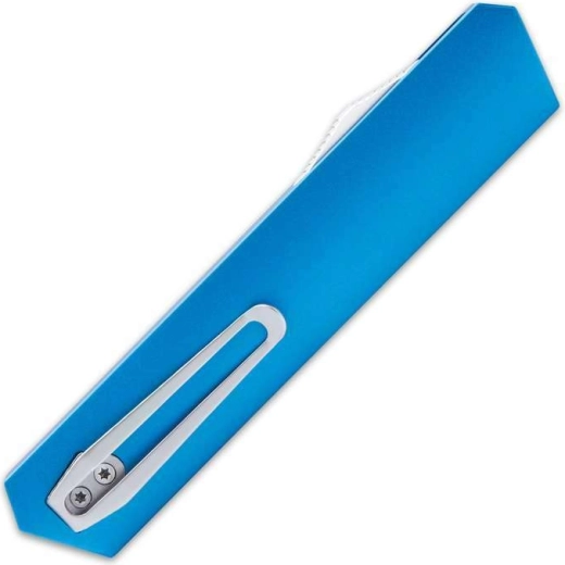 L’impugnatura è realizzata in alluminio fresato CNC in un attraente colore blu, garantisce una presa sicura e mantiene al contempo un peso contenuto. La pratica clip da tasca facilita il porto e l’uso rapido, mentre la custodia in nylon protegge il coltello durante il trasporto.