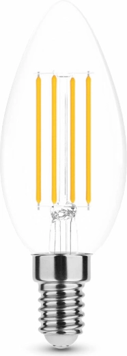 Elegante lampadina LED a forma di candela con tecnologia Filament che offre luce bianco caldo 2700 K, elevato flusso luminoso 806 lm, consumo ridotto di 7 W e dimmerabilità per un'atmosfera perfetta. Grazie all'angolo di emissione di 360° illumina uniformemente l'ambiente, ideale per lampadari e apparecchi decorativi.