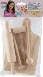 Il set è realizzato in legno di qualità con superficie liscia per un uso confortevole e sicuro. Grazie ai pezzi universali – tagliere, mattarello e batticarne – i bambini possono facilmente imitare la preparazione dei pasti e apprendere le attività di base in cucina.
