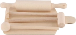 La riproduzione realistica del tagliere, del mattarello e del batticarne motiva i bambini al gioco imitativo e sostiene una fantasia sana.