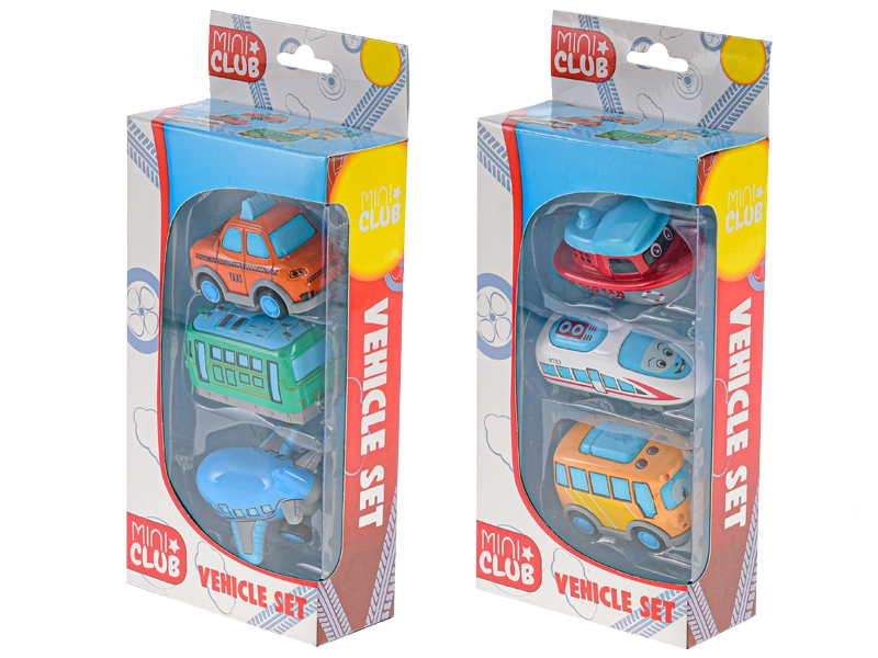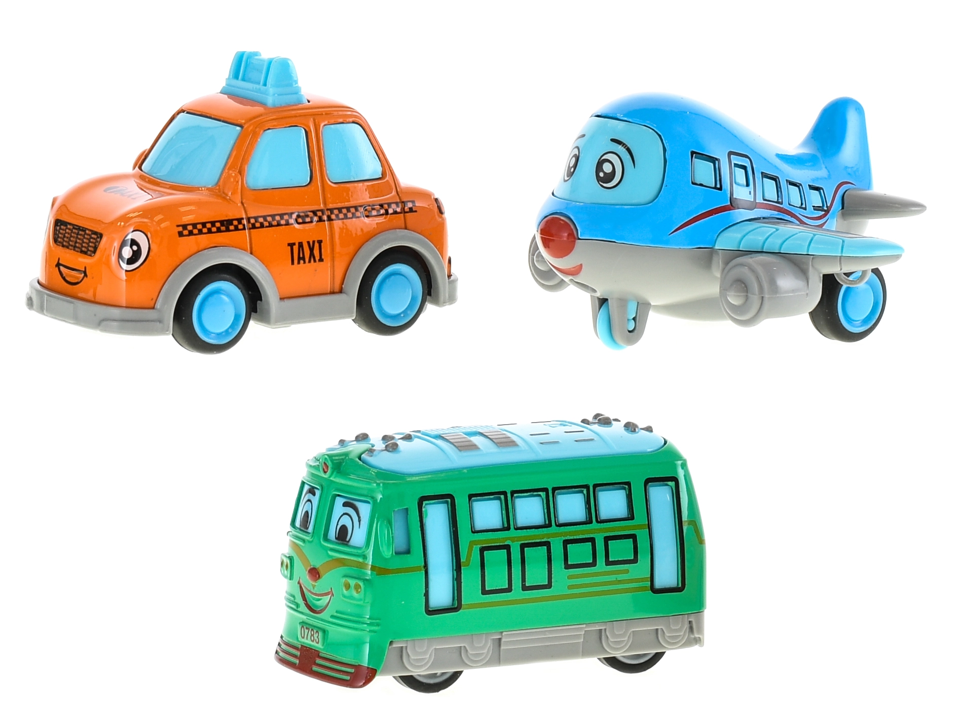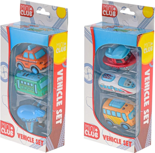- 3 veicoli in confezione, assortimento di auto, treno, aereo o nave