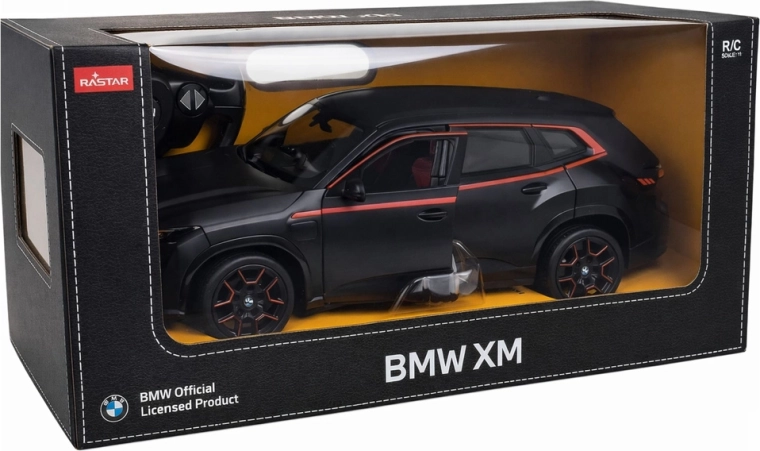 Modello con licenza ufficiale BMW XM in scala 1:14 del brand RASTAR, con design realistico, movimento in tutte le direzioni e affidabile controllo a 2,4 GHz. Finitura sportiva nera con accenti rossi, luci anteriori e posteriori funzionanti, porte apribili e pneumatici in gomma garantiscono divertimento per bambini e adulti.