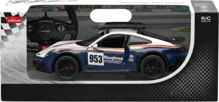 L'auto R/C con licenza PORSCHE 911 Dakar del marchio RASTAR in scala 1:14 offre una realizzazione realistica, controllo fluido a 2,4 GHz e ottime prestazioni di guida. Porte apribili, luci LED, ammortizzazione su quattro ruote, pneumatici in gomma ad alta aderenza e differenziale garantiscono divertimento anche su superfici irregolari. Il portapacchi sul tetto removibile e la verniciatura dettagliata ispirata alla leggendaria Porsche 953 conquisteranno collezionisti e bambini.