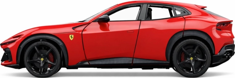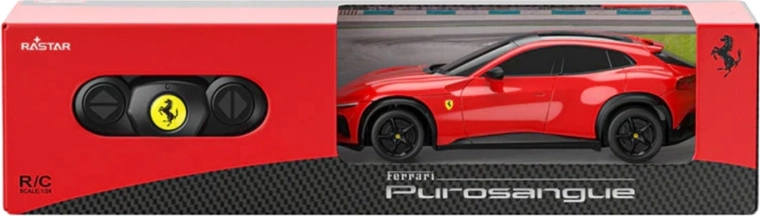 Modello dettagliato FERRARI PUROSANGUE radiocomandato in scala 1:24 del marchio Rastar, colpisce per la lavorazione realistica, la silhouette SUV elegante e il controllo stabile a 2,4 GHz. Offre guida in tutte le direzioni, sospensioni indipendenti e una struttura robusta in plastica di alta qualità – ideale per il divertimento e come modello da collezione.