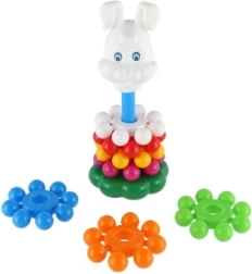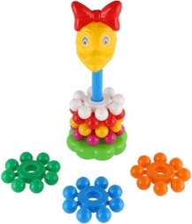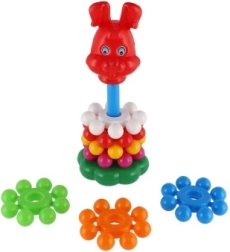 Questa allegra piramide di plastica con anelli è il primo gioco didattico ideale per i più piccoli. I bambini afferrano facilmente gli anelli e li impilano sull'asta, allenando in modo naturale la motricità fine, le abilità di coordinazione e il riconoscimento di colori e dimensioni. Grazie all'altezza di 26 cm, la torre è stabile, ben visibile e invita a ripetere l'attività.