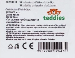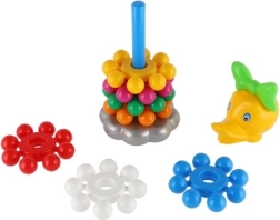 Il giocattolo è realizzato in plastica leggera e resistente con bordi arrotondati ed è disponibile in 3 varianti con diverse forme di anelli e divertenti motivi di animali in cima. La pratica confezione in rete facilita sia il riposizionamento sia il trasporto.