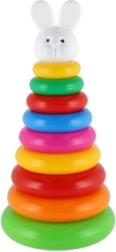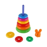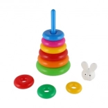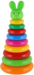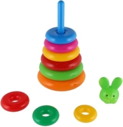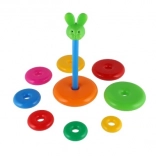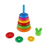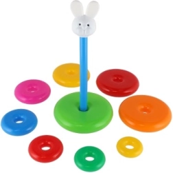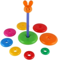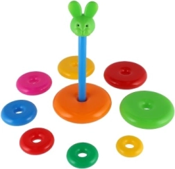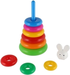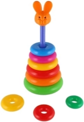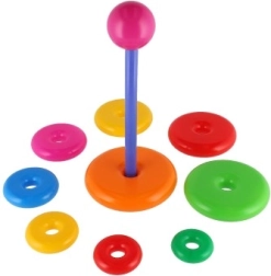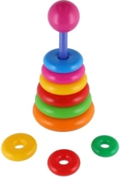 Questa piramide impilabile con anelli colorati è il gioco di costruzione ideale per iniziare. I bambini infilano gli anelli sull'asta e li impilano dal più grande al più piccolo, allenando in modo naturale la motricità fine, la pazienza e il ragionamento logico. La base è costituita da un solido supporto in plastica con asta e un elemento superiore rimovibile (a seconda della variante).