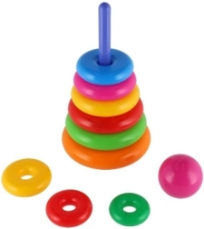 Infilare gli anelli sull'asta centrale rafforza naturalmente la presa, la coordinazione occhio–mano e la capacità di concentrazione. Un'ottima scelta per i primi giochi didattici.